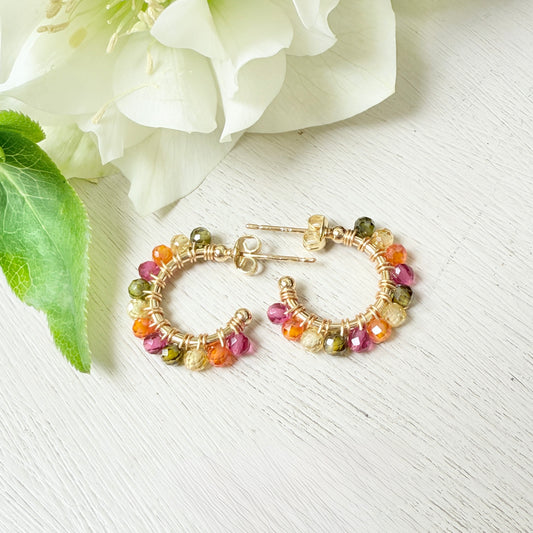 Chunky Tutti Frutti Mini Hoop Beaded Earrings
