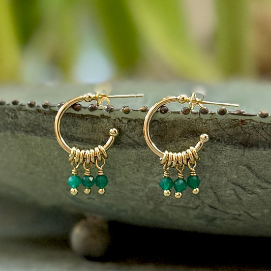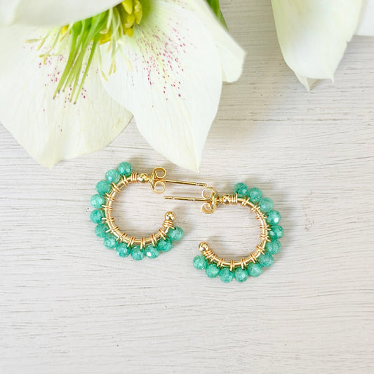 Chunky Mid Emerald Green Jade Mini Hoop Beaded Earrings