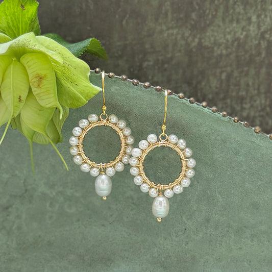 Freshwater Pearl Mini Round With Pearl Drop Beaded Earrings
