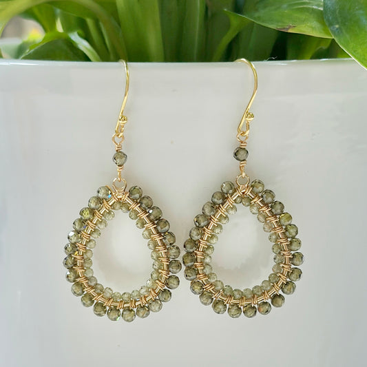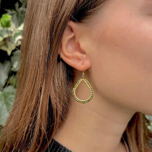 Mid Olive Green Peridot Midi Teardrop Beaded Earrings