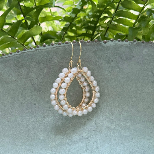 Freshwater Pearl Double Beaded Midi Teardrop Earrings