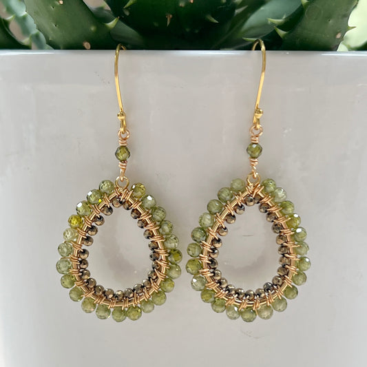 Mid Olive Green Peridot & Pale Olive Green Peridot Double Beaded Midi Teardrop Earrings