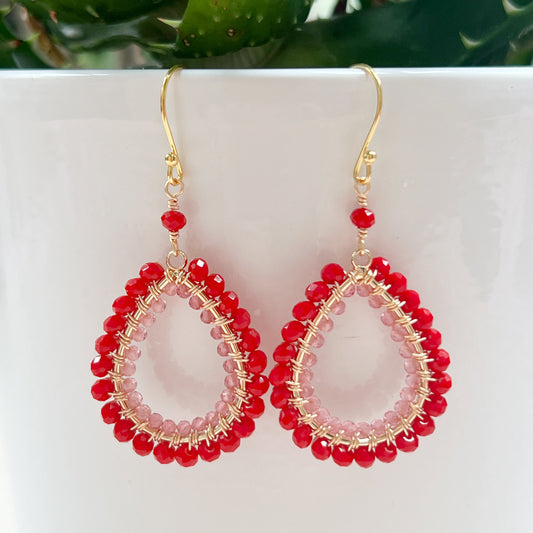 Red Jade & Candy Pink Jade Double Beaded Midi Teardrop Earrings