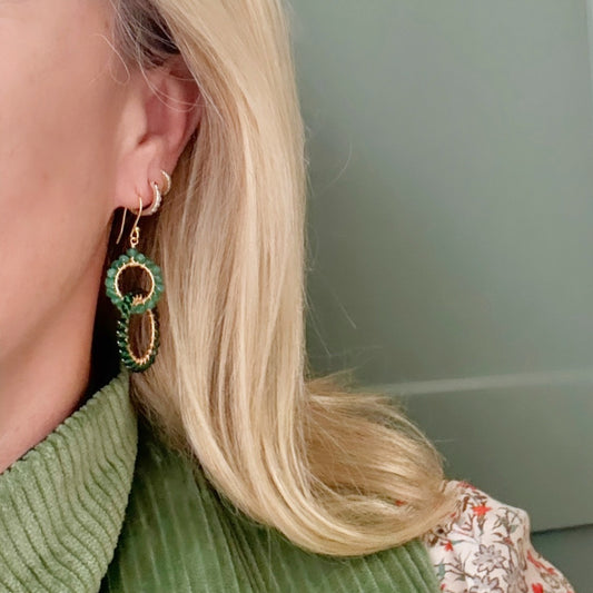 Emerald Green Jade Maxi Rolo Teardrop Beaded Earrings