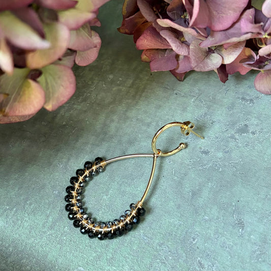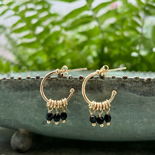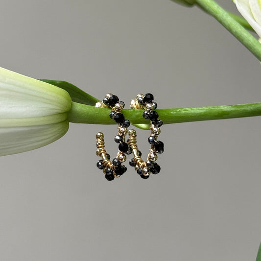 Black Onyx & Charcoal Hematite Mini Bobble Hoop Beaded Earrings