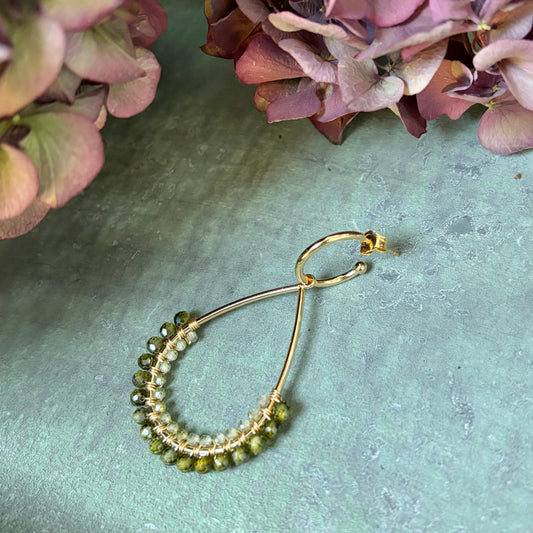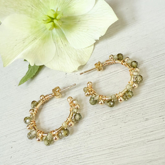 Dark Olive Green Peridot & Pale Peridot Mini Bobble Hoop Beaded Earrings