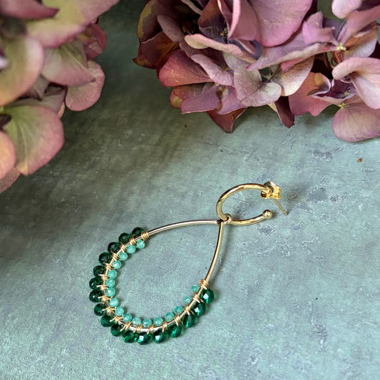 Emerald Green & Mint Jade 1/2 Teardrop Earrings On Hoops