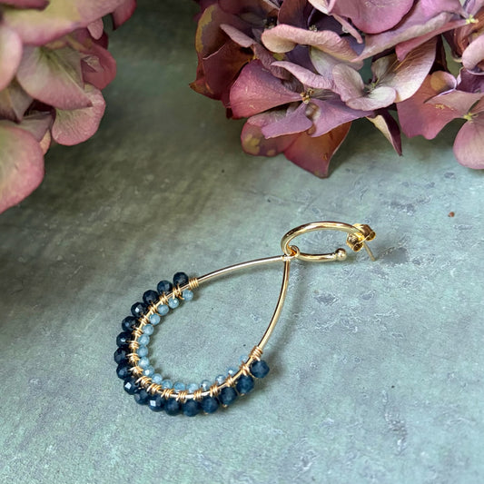 Dark Denim Iolite & Pale Denim Azurite 1/2 Teardrop Earrings On Hoops