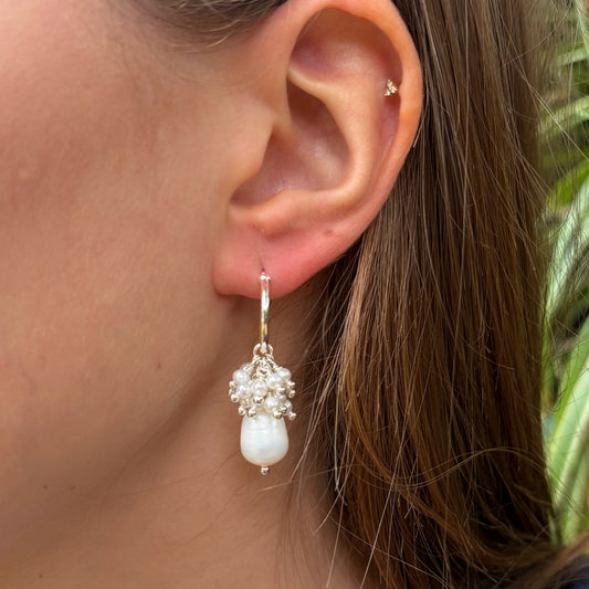 Mini Hoop Earrings With Ibiza Pearl & Pearl Drops (Silver)