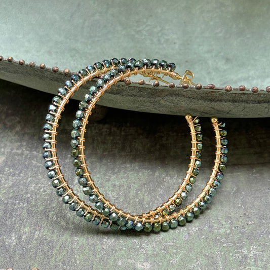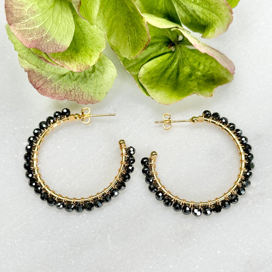 Charcoal Hematite Solid Midi Hoop Beaded Earrings