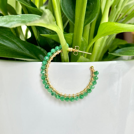 Apple Green Jade Solid Midi Hoop Beaded Earrings