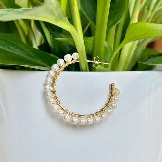 Freshwater Pearl Solid Midi Hoop Beaded Earrings