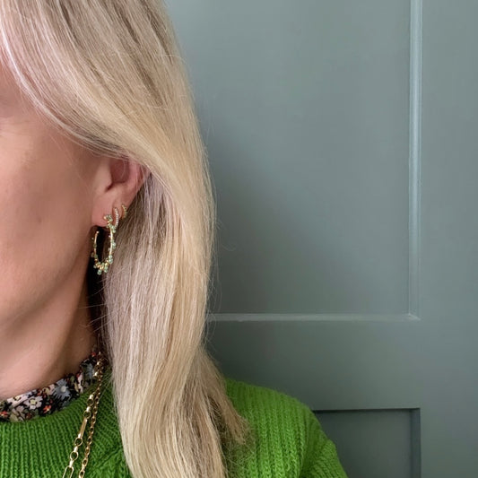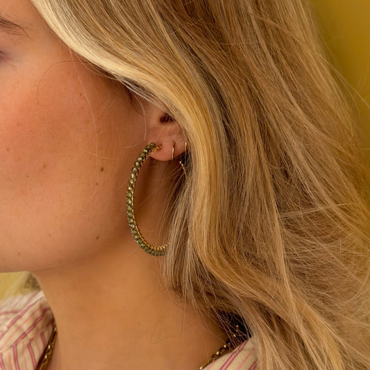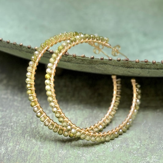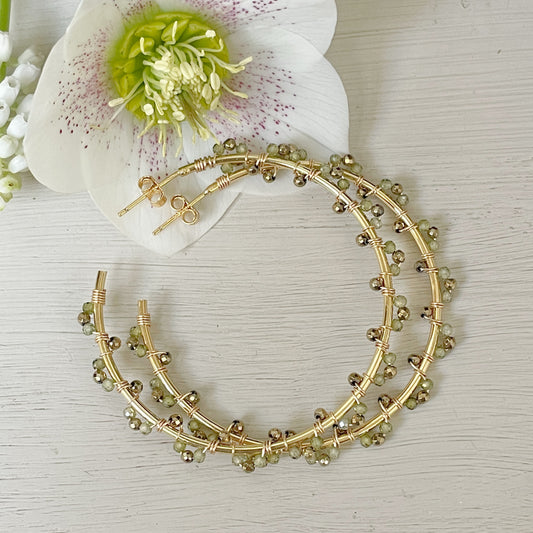 Olive Green Peridot & Pyrite Swirl Wrapped Maxi Hoop Earrings