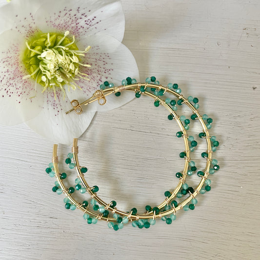 Mint Green Jade & Emerald Green Jade Swirl Wrapped Maxi Hoop Earrings