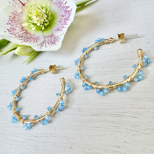 Cornflower Blue Kyanite Swirl Midi Hoop Beaded Earrings