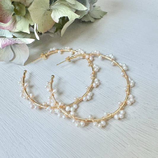 Freshwater Pearl Swirl Wrapped Maxi Hoop Earrings