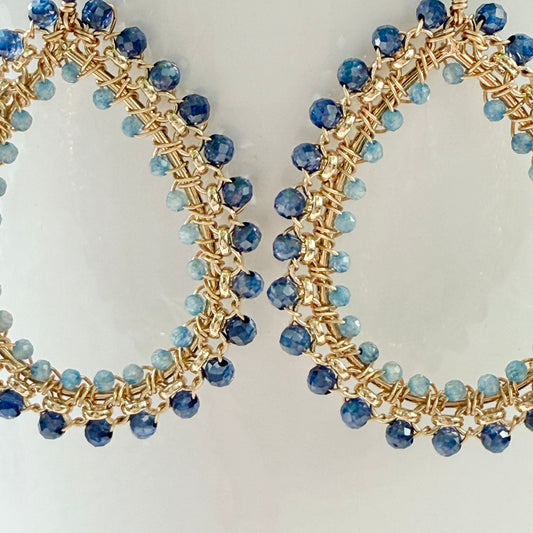 Royal Blue Azurite & Cornflower Kyanite Maxi Rolo Teardrop Beaded Earrings