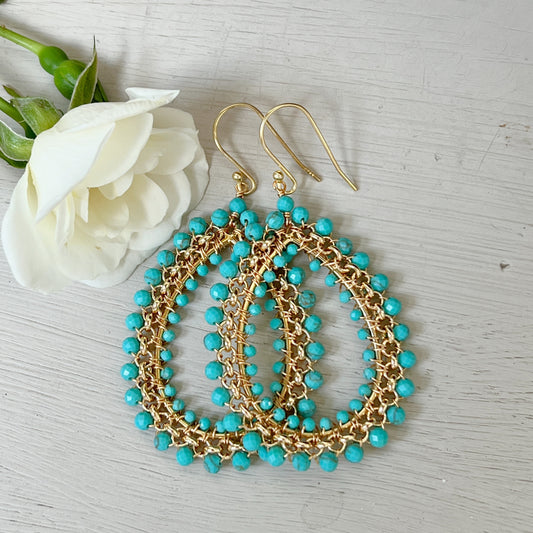 Turquoise Blue Maxi Rolo Teardrop Beaded Earrings