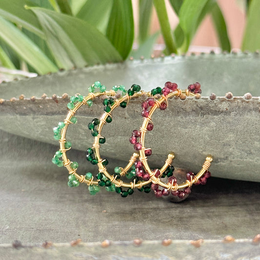 Burgundy & Fuchsia Pink Garnet Swirl Midi Hoop Beaded Earrings