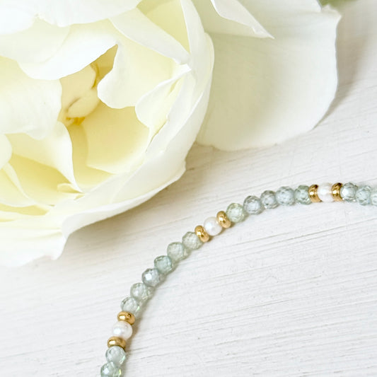 Sage Green Quartz & Pearl Ombré & Gold Nugget Stretchy Gemstone Bracelet