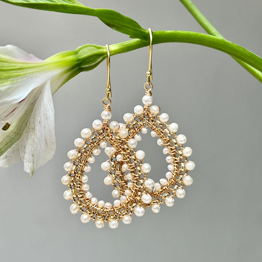 Freshwater Pearl Maxi Rolo Teardrop Beaded Earrings