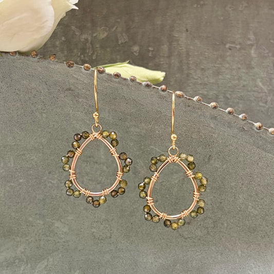 Olive Green Peridot Mini Swirl Teardrop Earrings