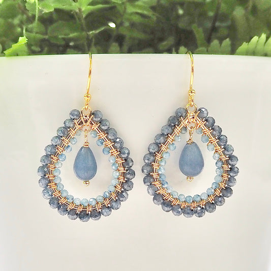 Airforce Blue Quartz + Dark Cornflower Blue Kyanite 1/2 Teardrop Beaded Earrings