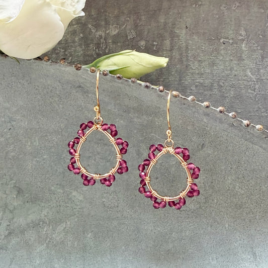 Burgundy Red Garnet Mini Teardrop Earrings