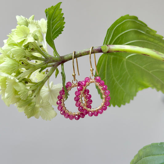 Fuchsia Pink Garnet Mini Swirl Teardrop Earrings
