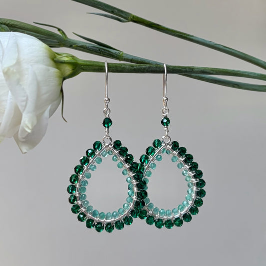 Emerald Green Jade & Mint Green Jade Double Beaded Midi Teardrop Earrings (Silver)