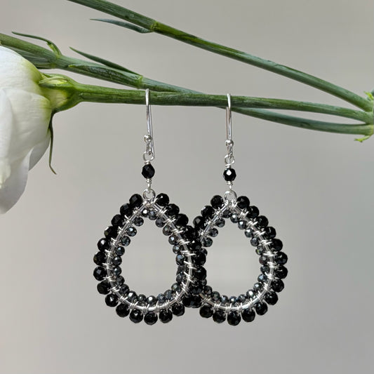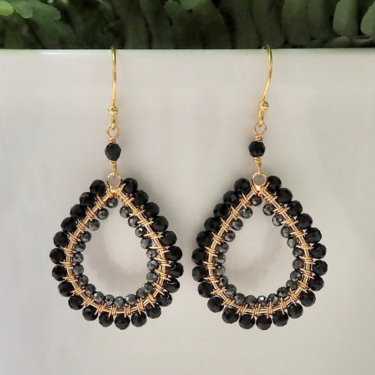 Black Onyx & Charcoal Grey Hematite Double Beaded Midi Teardrop Earrings