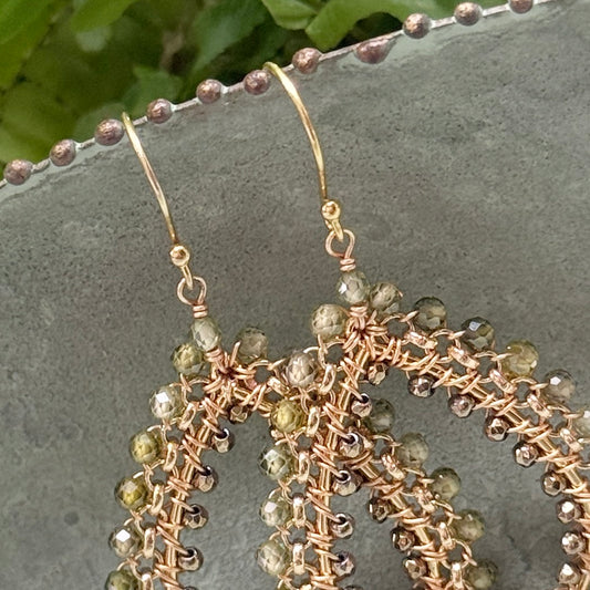 Olive Green Peridot & Sparkly Pyrite Maxi Rolo Teardrop Beaded Earrings