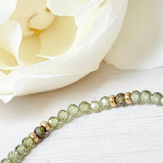 Olive Peridot & Double Gold Nugget Stretchy Gemstone Bracelet