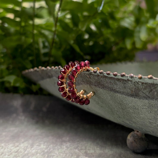 *Chunky Burgundy Garnet Mini Hoop Beaded Earrings