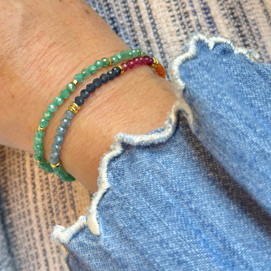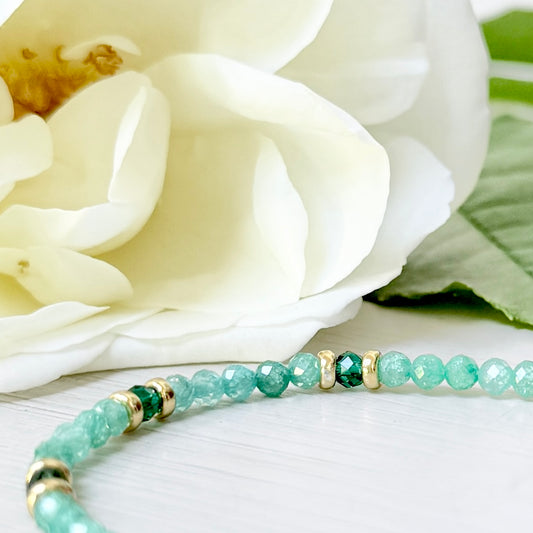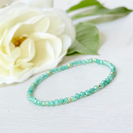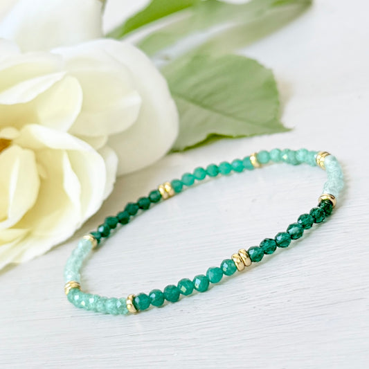 Mint Jade, Emerald Jade & Double Gold Nugget Stretchy Gemstone Bracelet
