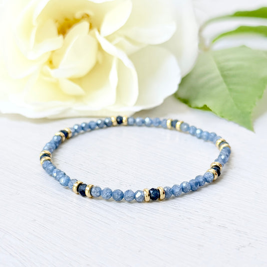 Denim Iolite & Double Gold Nugget Stretchy Gemstone Bracelet