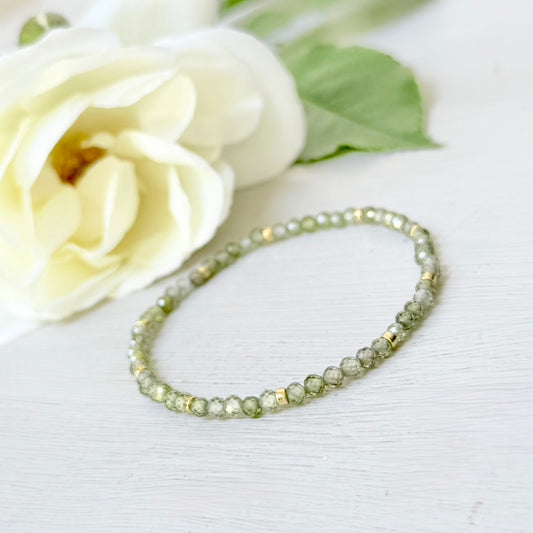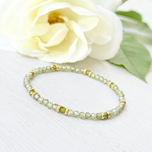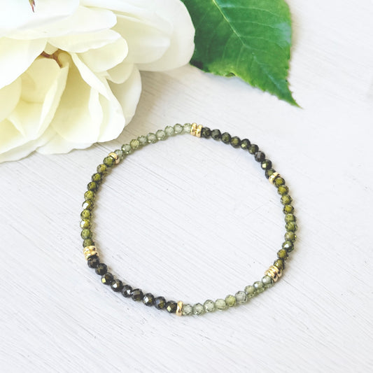 Olive Green Peridot Ombré & Gold Nugget Stretchy Gemstone Bracelet