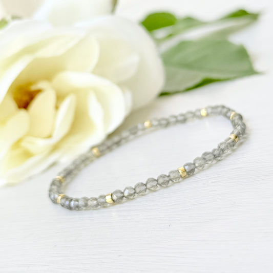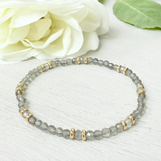 Taupe Agate & Grey Labradorite Ombré & Gold Nugget Stretchy Gemstone Bracelet