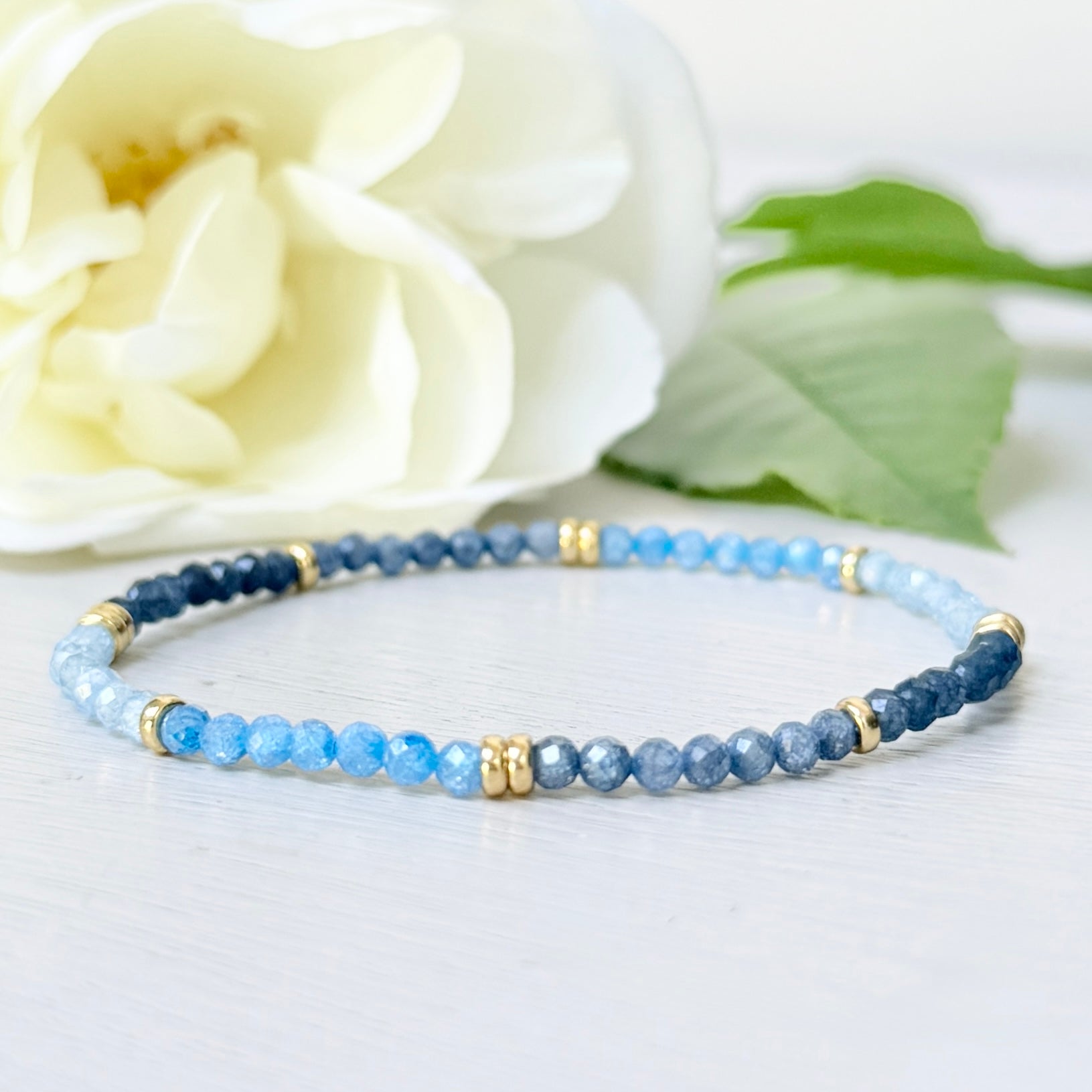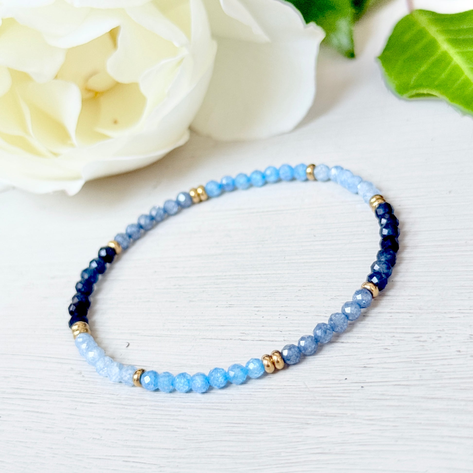 Blue Ombré & Gold Nugget Stretchy Gemstone Bracelet
