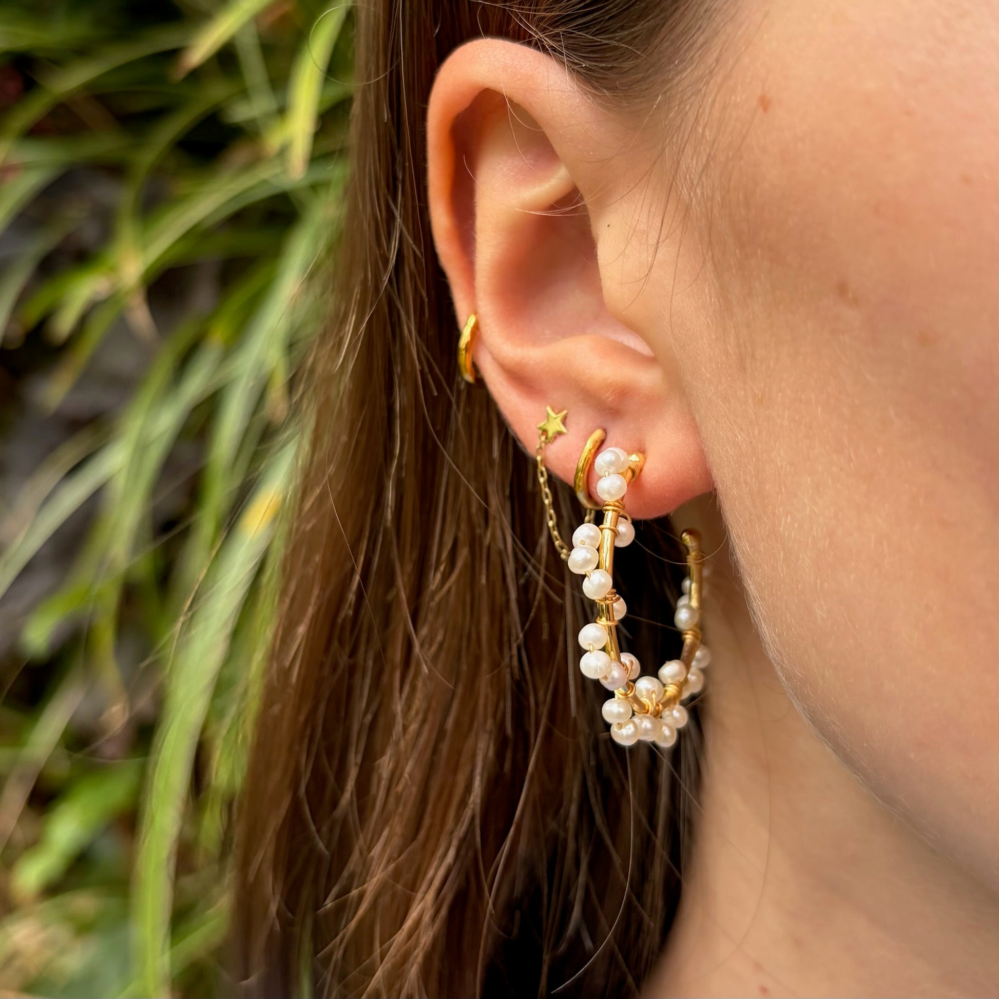 Handcrafted using semi-precious stones wrapped on Gold Plated hoops. Pin Hooks are 925 sterling silver with 24ct gold plating. Hypoallergenic.