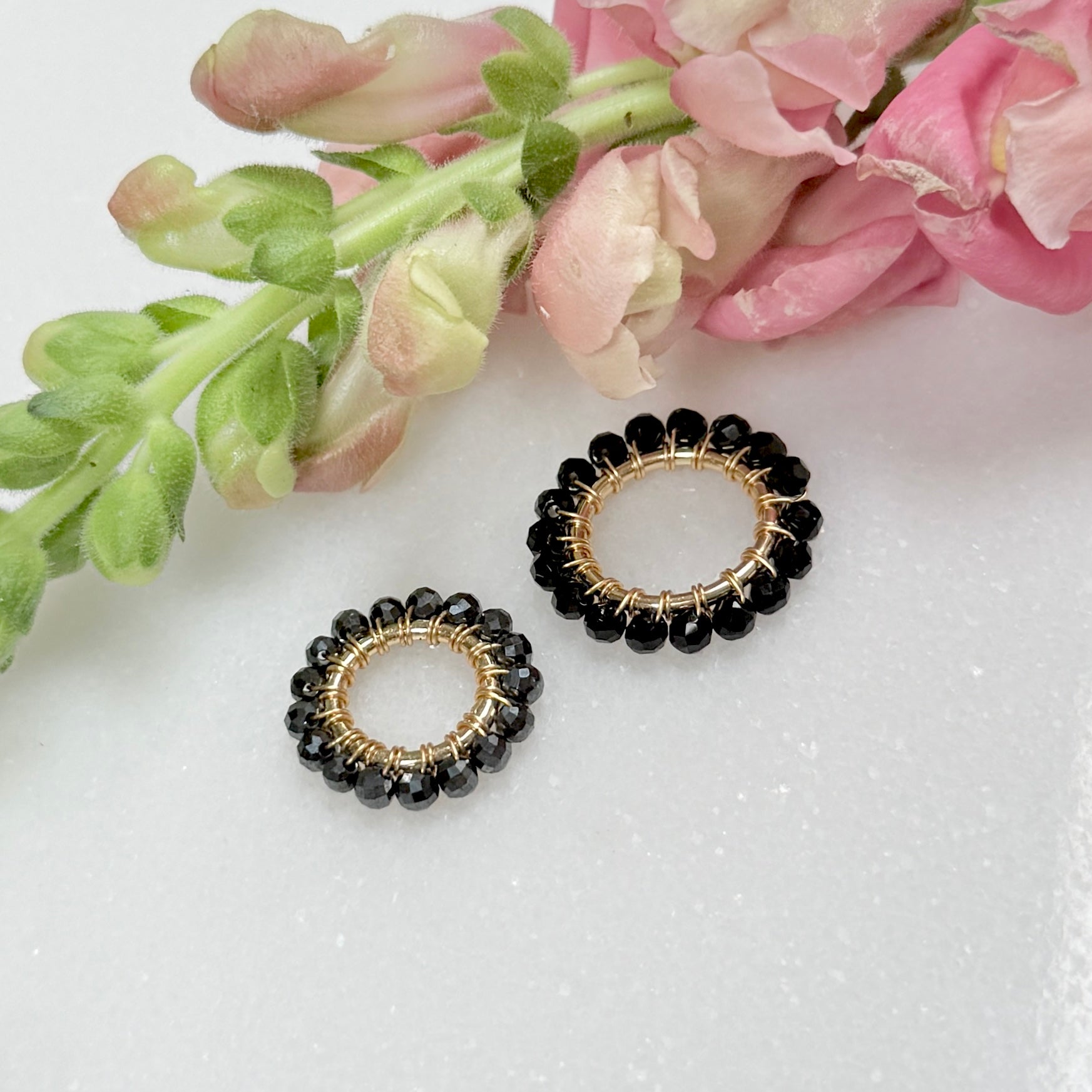 Pendants are handcrafted using semi-precious stones wrapped on 14ct gold vermeil circles. Hypoallergenic.