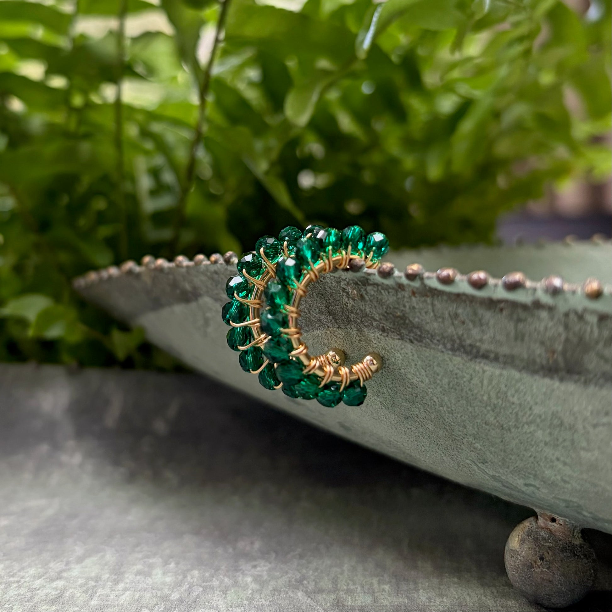 *Chunky Emerald Green Jade Mini Hoop Beaded Earrings