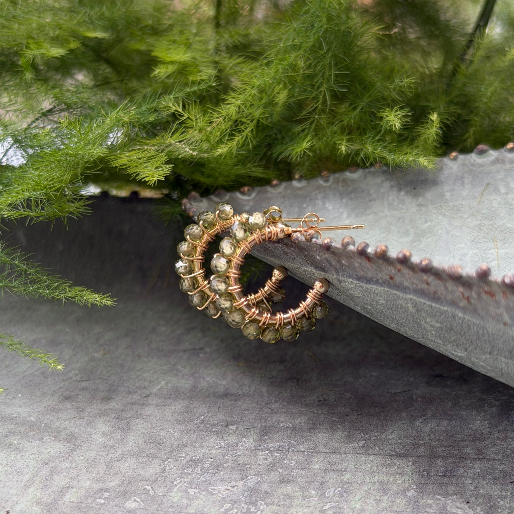 Handcrafted using semi-precious stones wrapped on 14ct gold vermeil hoops. Ear pins are 925 sterling silver with 14ct gold plating. Hypoallergenic.