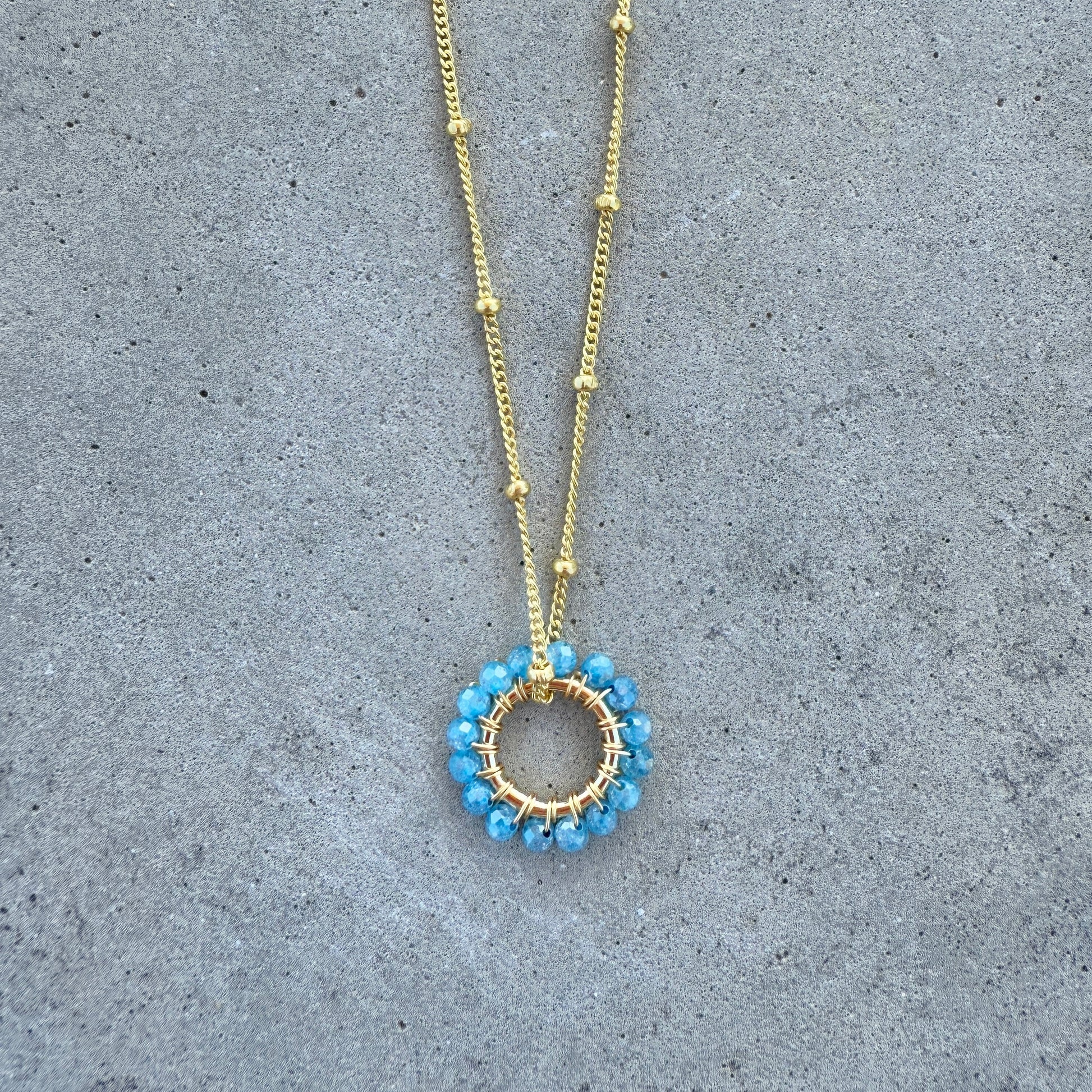 Pendants are handcrafted using semi-precious stones wrapped on 14ct gold vermeil circles. Hypoallergenic.