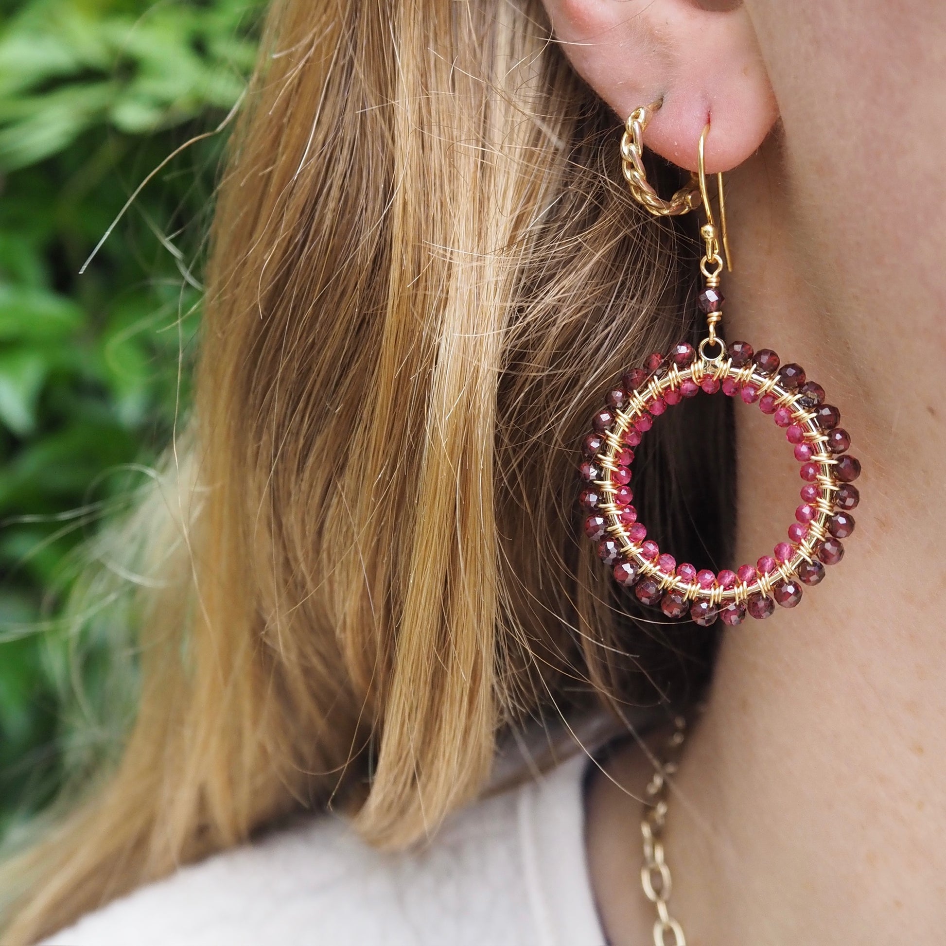 Handcrafted using semi-precious crystals/stones wrapped on gold vermeil shapes. Hooks are 925 sterling silver with 14ct gold plating. Hypoallergenic.