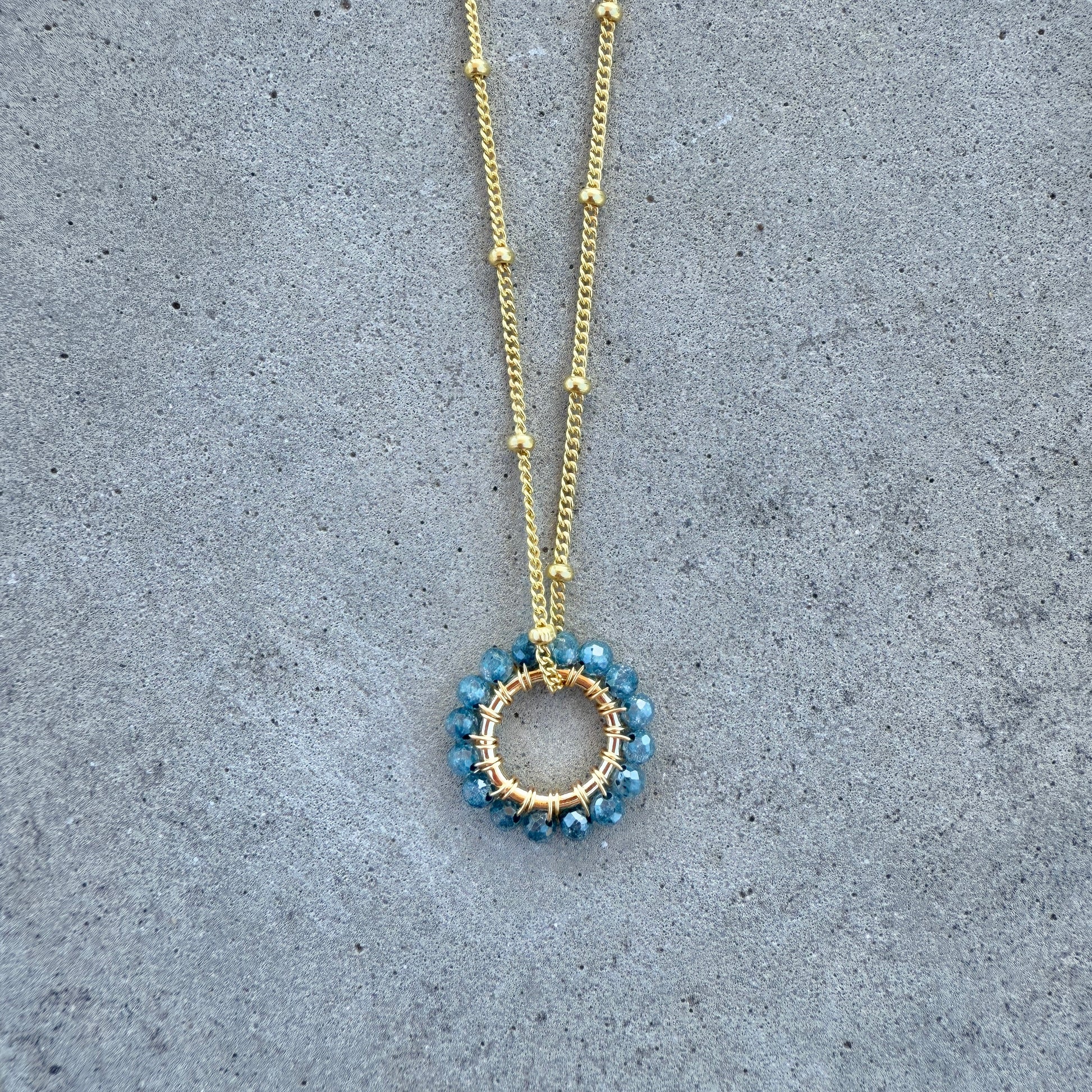 Pendants are handcrafted using semi-precious stones wrapped on 14ct gold vermeil circles. Hypoallergenic.