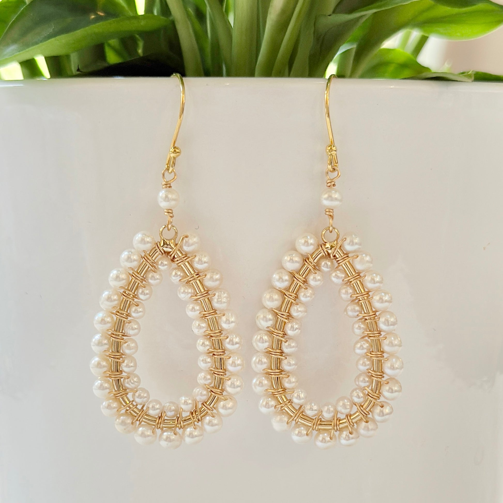 Freshwater Pearl Double Beaded Long Teardrop Earrings