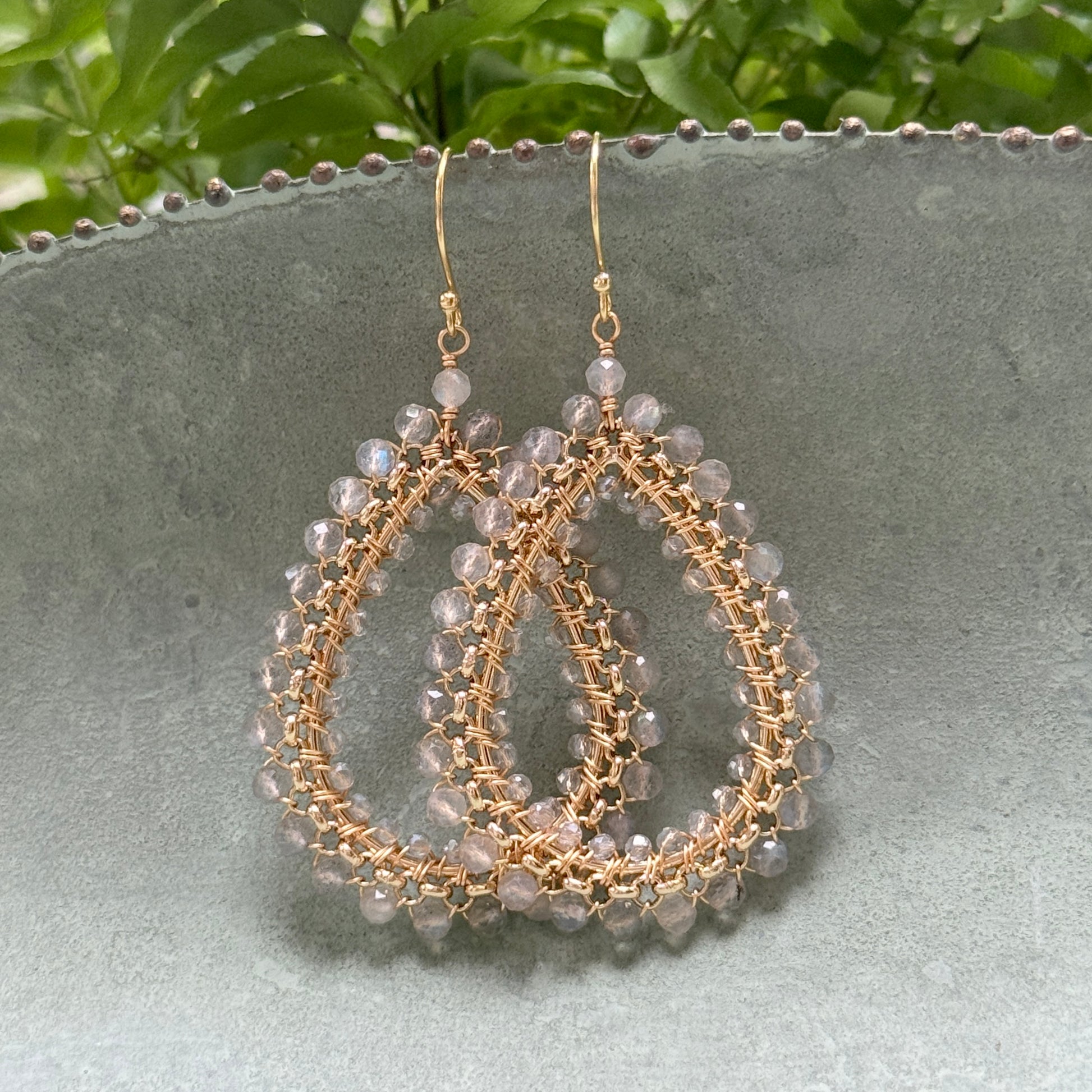 Grey Labradorite Maxi Rolo Teardrop Beaded Earrings