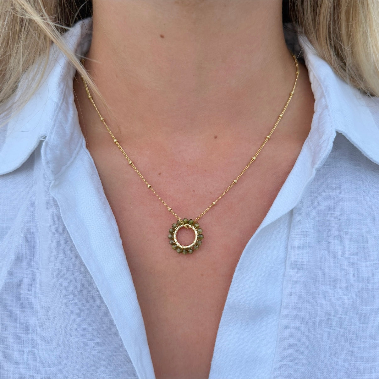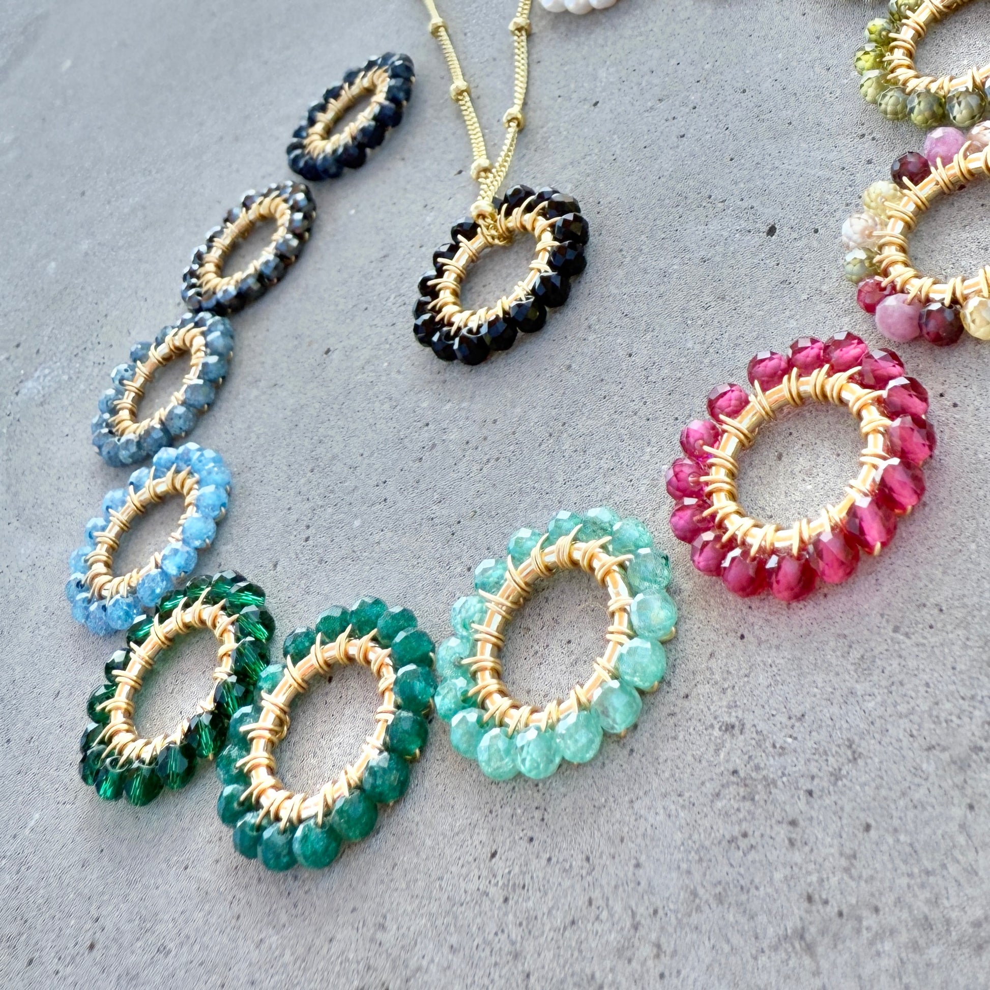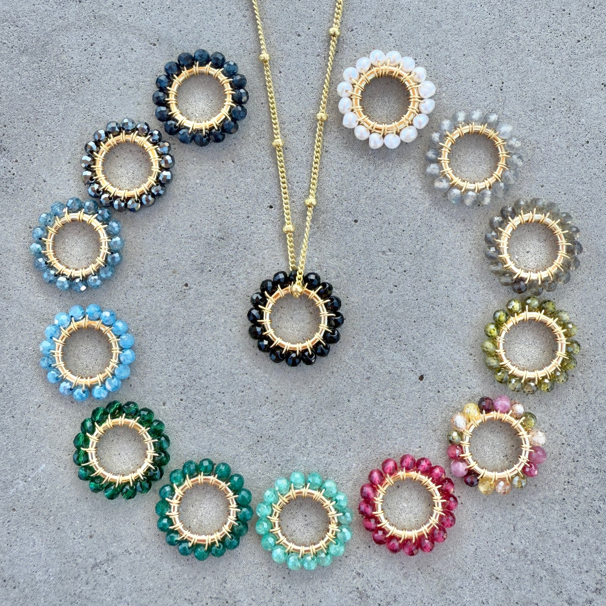 Semiprecious beaded circular pendant that will fit onto your CKC belcher or satellite ball chain. You can mix and match colours and sizes to get the look you want! *Chain must be purchased separately.