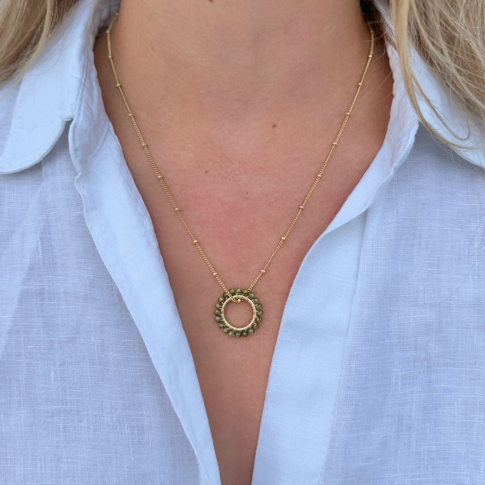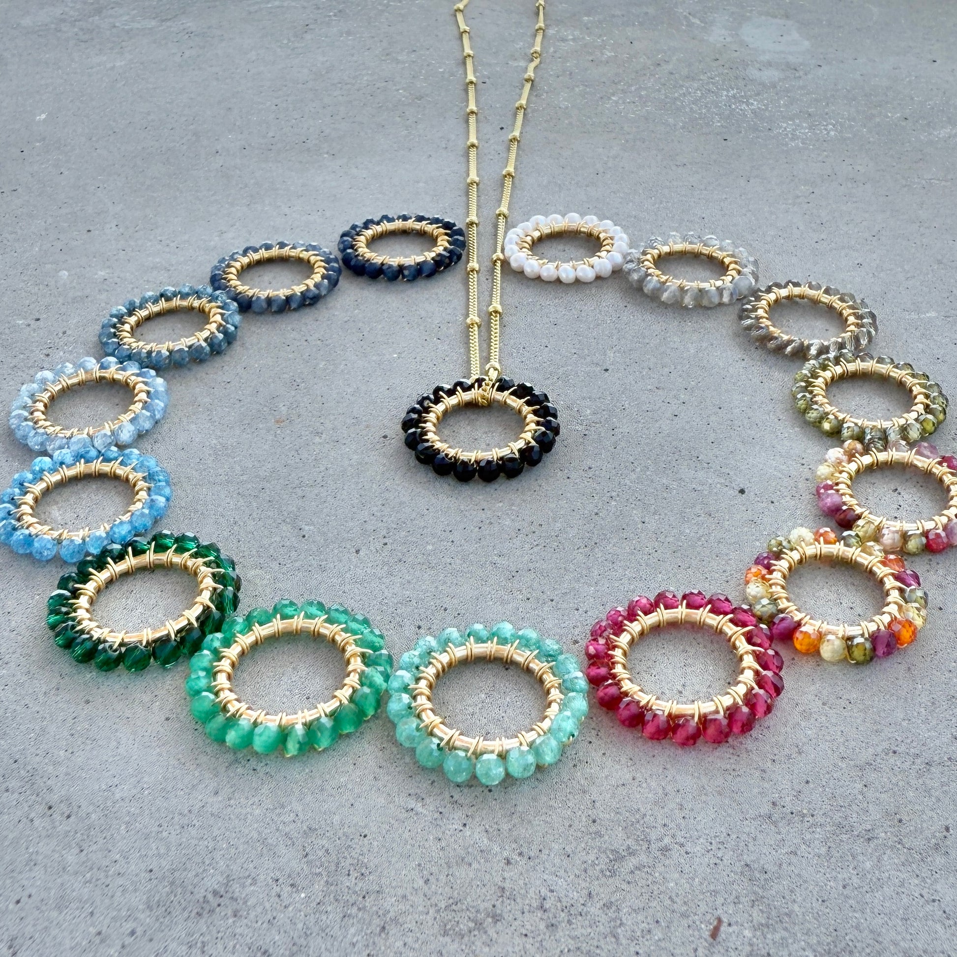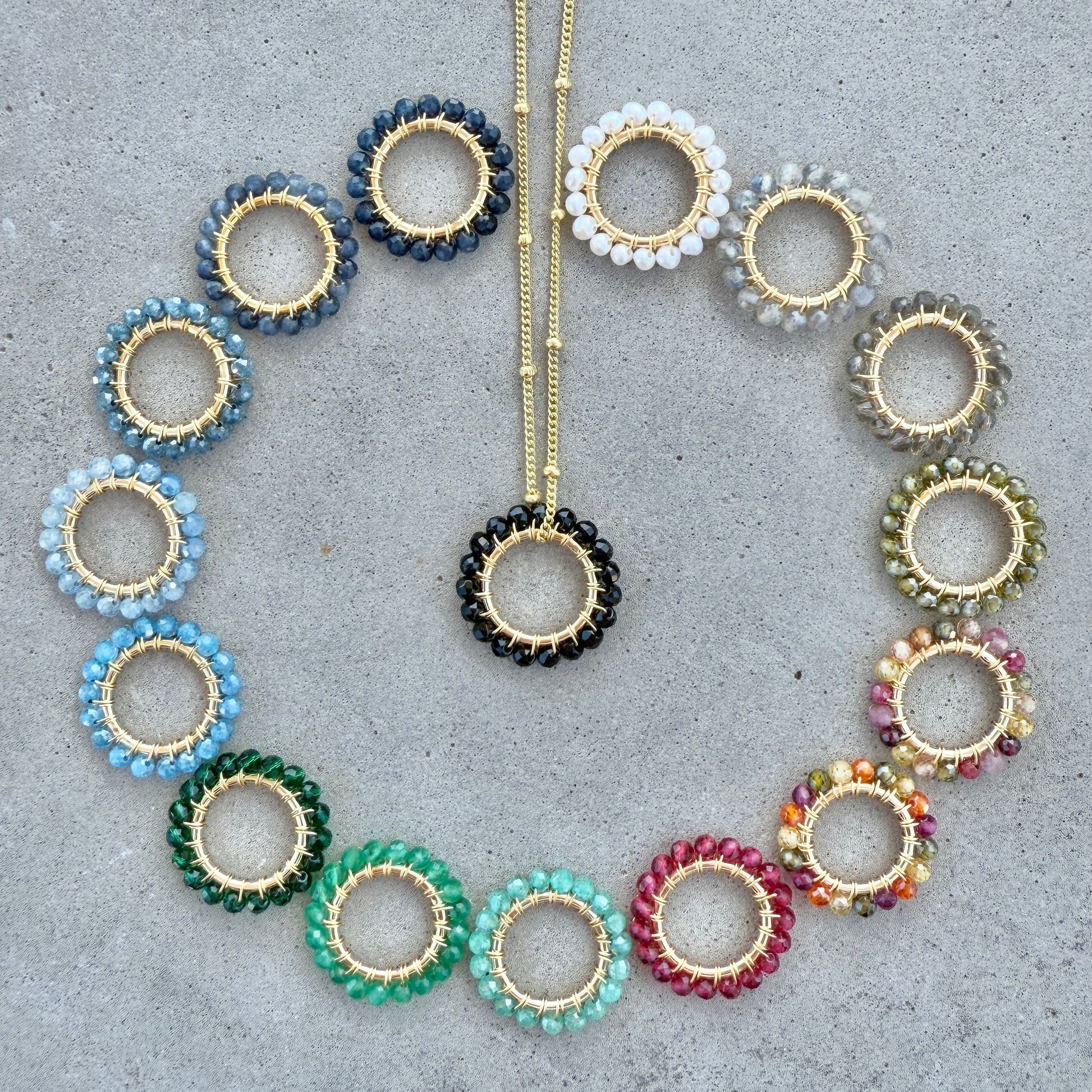 Semiprecious beaded circular pendant that will fit onto your CKC belcher or satellite ball chain. You can mix and match colours and sizes to get the look you want! *Chain must be purchased separately.